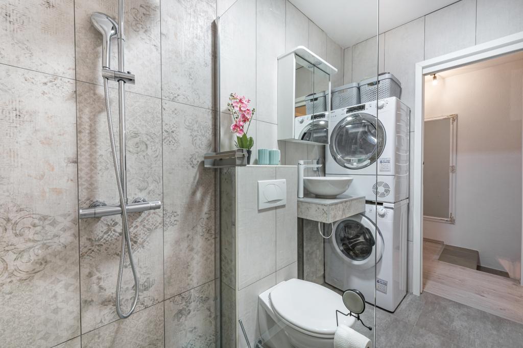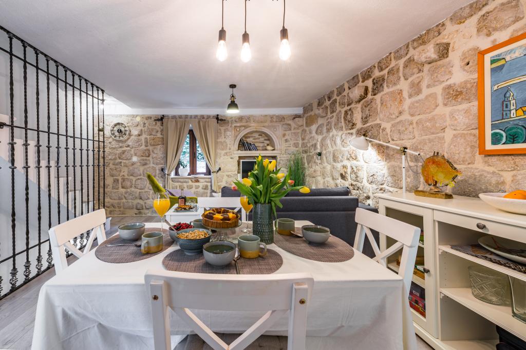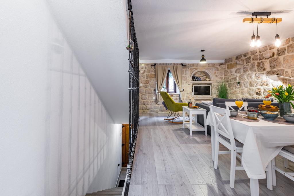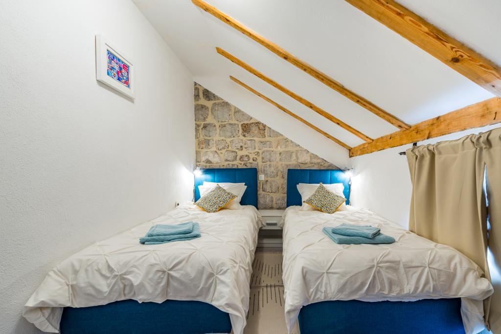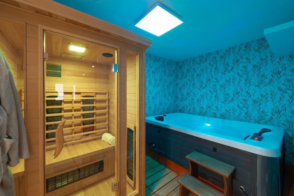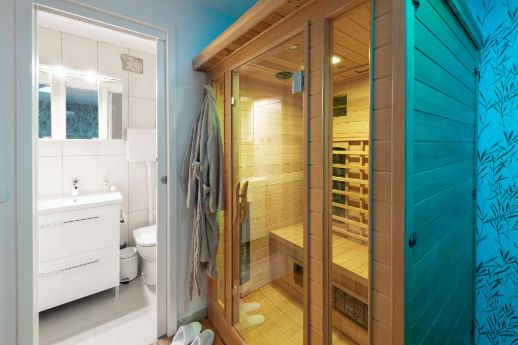 Cette magnifique villa traditionnelle au charme rustique a été récemment rénovée. Dotée d'une entrée privée, elle offre 100 m² de surface habitable à votre usage exclusif et peut accueillir 4 personnes dans les chambres, ainsi qu'une personne supplémentaire grâce à un lit d'appoint dans le salon. Au rez-de-chaussée, vous trouverez un espace bien-être comprenant une salle de fitness, un sauna infrarouge et un jacuzzi pour une détente absolue. La salle de bain est attenante à la salle de sport. Au premier étage, vous découvrirez un salon avec une Smart TV à écran plat (et accès aux chaînes MaxTV), une salle à manger, une cuisine entièrement équipée et des toilettes. Le deuxième étage se compose d'une salle de bain et de deux chambres : Chambre 1 : deux lits simples ; Chambre 2 : deux lits simples. La salle de bain est équipée d'un lave-linge et d'un sèche-linge, ainsi que d'un fer et d'une table à repasser. La climatisation est installée dans le salon/salle à manger, chaque chambre et la salle de fitness. Les salles de bain, la salle de fitness et l'espace sauna/jacuzzi sont équipés d'un chauffage au sol.