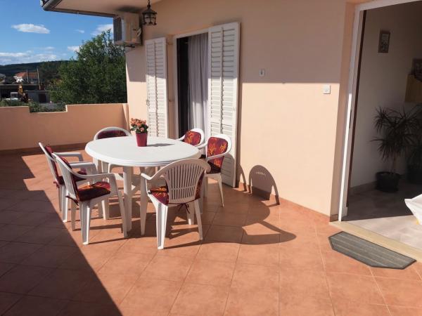 Type d'installation - maison familiale. Il est situé dans un quartier calme de Sukosan. Distance de la plage est à 500 mètres et le centre est à 50 mètres. L'appartement a sa propre entrée et terrasse et parking à côté de la maison. Il y a un accès internet illimité, une télévision, un barbecue, une cuisine entièrement équipée et une grande terrasse. L'appartement est climatisé.