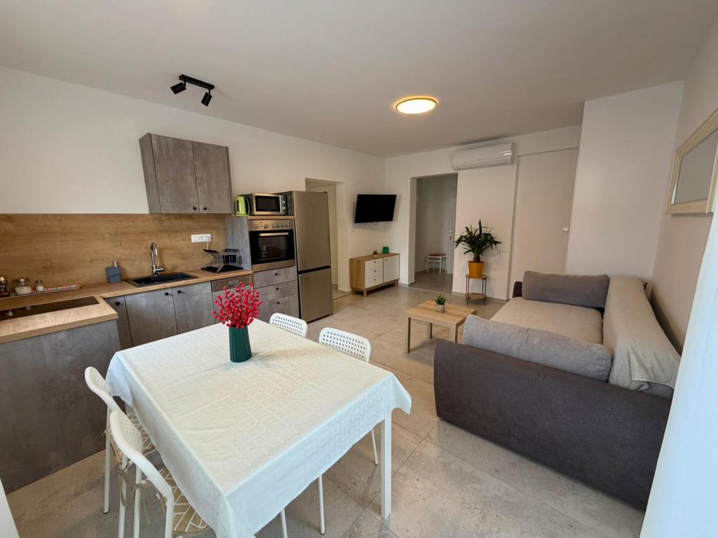 Appartements dans une maison neuve avec cuisine privée entièrement équipée, literie, salle de bain et terrasse. La mer est à moins de 50 m. Ambiance familiale. Jardin et environnement sécurisés pour les enfants. Parking et barbecue. À 50 m de la mer, à 10 min à pied du centre-ville et à 15 min en voiture de Zadar. Idéal pour des vacances reposantes : lecture, musique, détente, contact avec la nature et bien-être. Plusieurs plages se trouvent à proximité (galets, béton, et une plage de sable en plein centre-ville). Sukošan est un village portuaire situé dans une baie (le Port d'Or de Sukošan), à 11 km au sud-est de Zadar. Spacieux et paisible, Sukošan offre un long littoral, de nombreuses criques isolées et une mer limpide bordée d'îles s'étendant jusqu'au parc national des Kornati. Sukošan possède un grand port de plaisance, le complexe naturel de Tustica, des plages de sable fin, de beaux bâtiments, des oliveraies et des vignobles, et bien d'autres traditions…