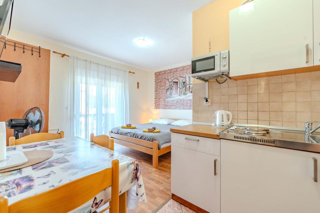 Juste tout ce qu'il faut du logement pour un agréable séjour en mer, mais en plus c'est une belle terrasse avec vue sur la mer et les îles environnantes. Merveilleuse nature et paix, tout comme la plupart des gens souhaitent des vacances. Propriétaires sympathiques et arrangeants, dans l'ensemble des vacances positives et agréables et un séjour dans cet appartement.
