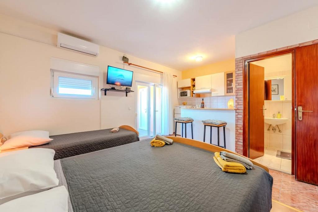 Toutes les recommandations pour ces appartements vous feront sentir comme chez vous. La vue depuis la terrasse est certainement l'une des plus belles que nous ayons jamais eues - elle offre paix et tranquillité. Les appartements sont très soignés et disposent de tout ce dont vous avez besoin pour des vacances parfaites. Et les hôtes Marin et Renata sont des gens au grand cœur, pleins d’amour et de compréhension. Nous reviendrons certainement et le recommandons chaleureusement à tous ceux qui recherchent des vacances de rêve.
