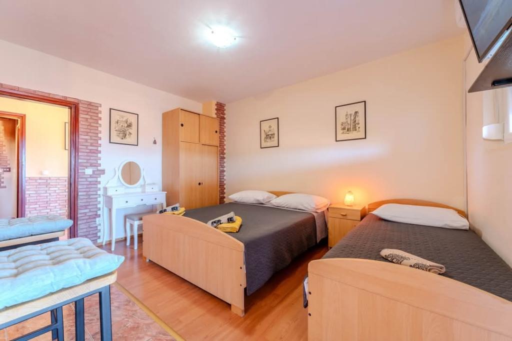 J'ai passé huit jours fantastiques avec sa femme. Les hôtes sont extrêmement accueillants. L'appartement est propre et bien rangé. Légumes maison du jardin. Un peu plus loin du centre et de la plage, mais il est remplacé par le silence et la paix nocturne. Suggestion - introduire la climatisation dans le logement et un nouveau matelas (je suis un peu plus lourd donc ça va plus fort). Je recommande pour les couples et les familles avec enfants.