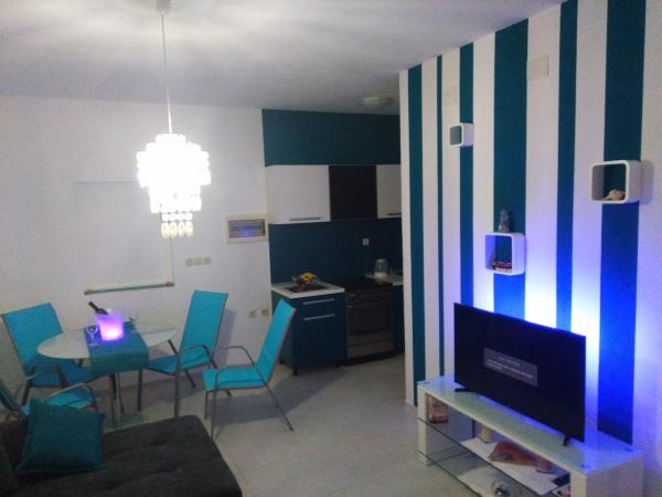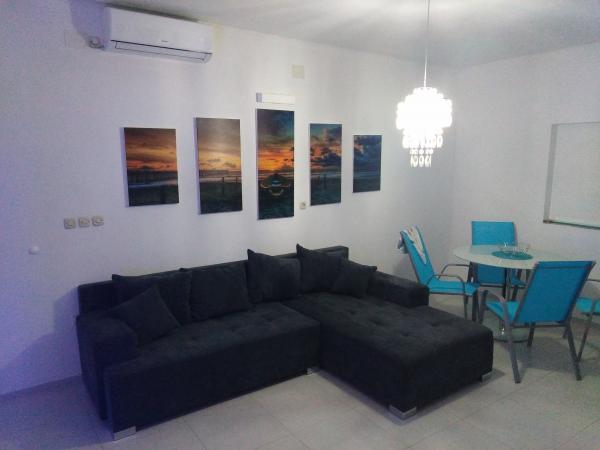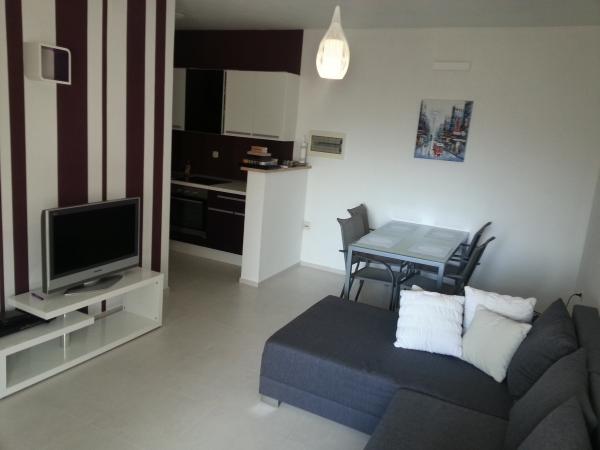 Appartements à louer sont luxueux et nouvellement décorées et climatisées et équipées d'une connexion internet wi-fi. Taille de chaque appartement est de 55 m2 avec terasaom de 30m2. L'appartement se compose d'une chambre, salon, salle de bains et cuisine, et est idéal pour 4 personnes, couples avec ou sans enfants. Parking couvert pour véhicules (garage) peut accueillir trois véhicules. Il est proche de plusieurs belles plages, course naturelle et sentiers de vélo, et la ville, mais dans un quartier calme et le port. L'appartement est situé près de la marina qui est une destination populaire pour les plaisanciers. A proximité il ya plusieurs criques cachées avec de belles plages où vous pourrez tranquillement profiter de la beauté de la mer cristalline.