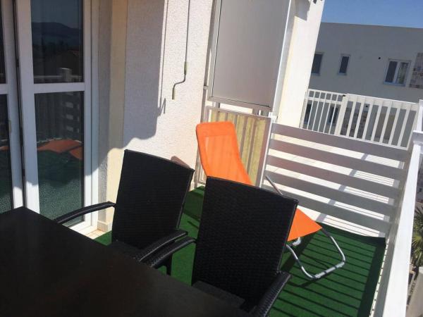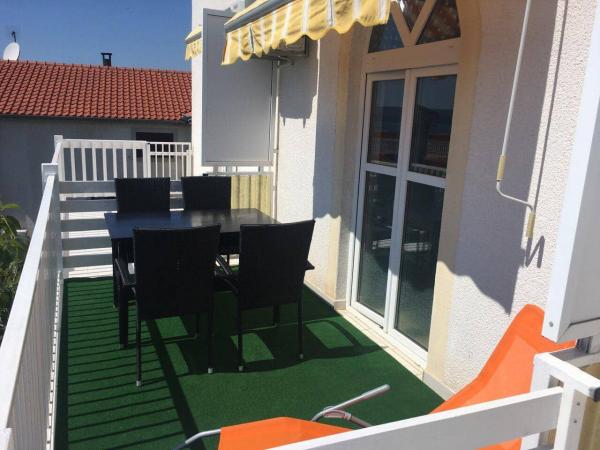 Appartements avec vue sur la mer: terrasse, air conditionné, chauffage, grill, parking, wifi. 450 m de la plage. 400 m du centre, 350 m du magasin.