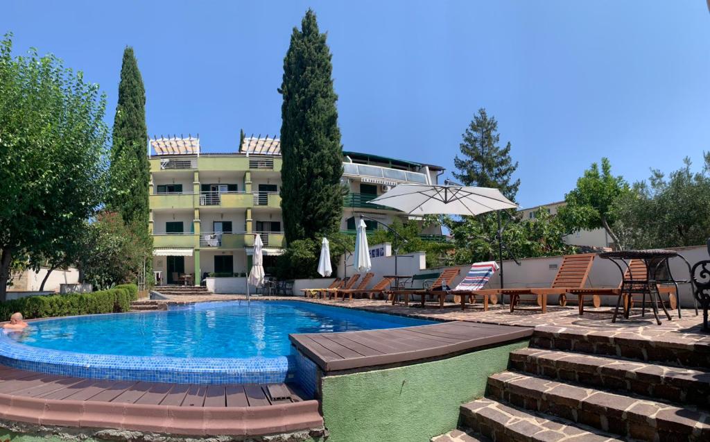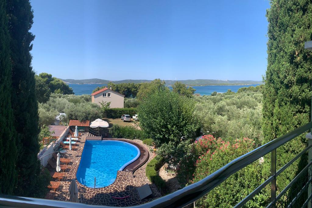 Villa "Smirna" 4*, PISCINE, 1 RANGÉE, VUE Région de Zadar, Biograd na moru - Sveti Filip i Jakov, BELLE PLAGE, VERT NATUREL, 8 TYPES D'APPARTEMENTS DIFFÉRENTS, grande cour, transats, barbecue, verdure, donnez-le charmes spéciaux. Les 8 TYPES DIFFÉRENTS d'appartements donnent sur la mer et les îles. Il est situé au premier rang de la mer. L'accès à la mer est de sable et de galets, et la plage aménagée est dotée de douches et de verdure naturelle. Dans la cour il y a un barbecue, espace de convivialité, : Catégorisation 4* Réception Parking privé Distance de la plage : 75m Distance du magasin : 25m Distance du restaurant : 50m Distance du centre : 300m Distance de l'hypermarché : 2km Distance de Biograd : 2 km Distance de Zadar : 25 km Cascades de Krka : 30 km Kornati : 30 km Rafting sur l'île de Zrmanja en bateau Split Međugorje Dubrovnik INSTALLATIONS : Piscine (la piscine a de l'eau de mer, nager sans sauter est autorisée de 8 à 20 h) Jardin Chaises longues Tables et chaises autour de la piscine Kavomat Location de vélos Dučan 50 m Ménage dans les appartements