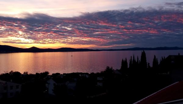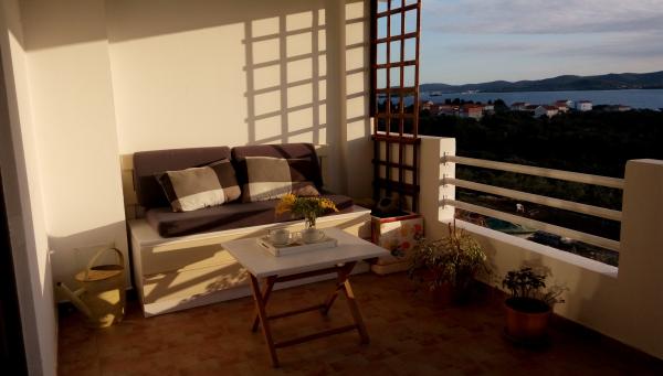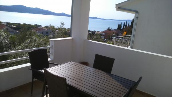 Appartement au rez-de-chaussée avec accès au jardin, une terrasse à l'entrée et la seconde terrasse avec une vue magnifique sur la mer et l'île de Pasman. Propre et bien rangé, les hôtes sont très gentils, la distance de la plage est accessible en quelques minutes. Cuisine entièrement équipée, climatisation fonctionne très bien repos.