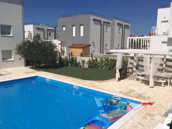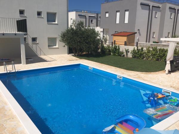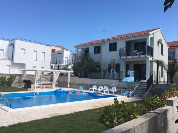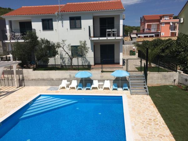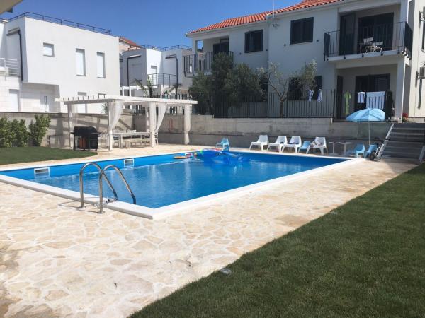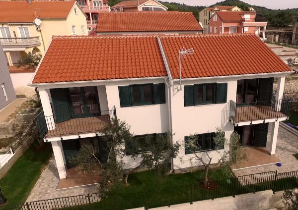 nouveaux appartements entièrement équipés et modernes dans un quartier calme de Tribunj, près de la ville, idéal pour des vacances sans soucis. Les appartements sont idéaux pour deux, mais peut accueillir confortablement jusqu'à quatre personnes. Les appartements sont entièrement équipés avec tout ce dont vous avez besoin pour des vacances sans souci - de la cuisine, salle de bains, lave-linge, lave-vaisselle, linge de lit, serviettes et espace extérieur commun avec piscine, chaises longues, barbecue et cuisine de jardin. En raison de la division des unités (deux unités distinctes, chacune avec deux appartements chacun), adaptés pour les familles ou la société de 8 membres qui peuvent rester dans la même unité avec la même entrée dans deux appartements séparés. Il est possible de louer la maison entière qui peut accueillir 16 personnes. Les appartements sont situés à quelques minutes à pied du centre Garade dans lequel le marché, magasins, pharmacie, centre de santé, des cafés, des restaurants, un parc et la marina, et 7 minutes à pied de la belle plage de Tribunj. Zone Tribunja est fantastique en raison de son emplacement, car il est situé à proximité de la ville, Sibenik,