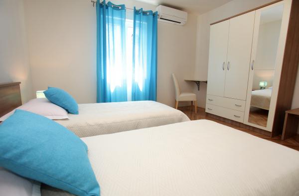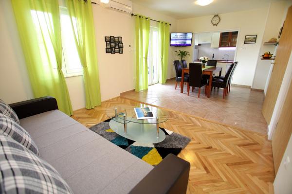 Appartement Biocic sont situés dans un quartier calme de l'île de Ciovo, mais à seulement 5 minutes à pied du centre-ville. La plage est à 10 minutes à pied de la maison et il ya une possibilité de nombreux autres plage en voiture des bateaux-taxis qui partent toutes les heures dans le voisinage de l'installation. Appartement de 90 m2 à 20 m2 de terrasse, propose un hébergement confortable pour 6 personnes. Deux chambres, salon, salle à manger et une cuisine et une terrasse spacieuse vous fournir tout ce dont vous avez besoin pour un séjour confortable près de la ville mais loin du bruit de la ville. L'appartement est entièrement climatisé (chaque chambre a sa propre climatisation) et équipé avec tous les appareils ménagers nécessaires (lave-linge, lave-vaisselle, micro-ondes, réfrigérateur avec congélateur, cafetière, fer, coffre-fort, TV et Wi-Fi inévitable), de sorte que vous pouvez vraiment sentir chez soi. Un parking est disponible à côté du bâtiment ainsi que d'une place d'amarrage privée à proximité (gratuit pour les séjours de 7 jours ou plus).
