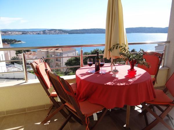 Appartement Marin est situé sur l'île de Ciovo à seulement 700 m (10 min à pied) de la ville historique de Trogir, qui est sous la protection de l'UNESCO. L'appartement avec terrasse, qui offre une vue magnifique sur la mer et la pinède dans la boue, n'est qu'à 10 minutes à pied de la plage. L'appartement confortable se compose de deux chambres avec lits doubles, d'une salle de bains, d'une cuisine entièrement équipée, d'une salle à manger et d'un salon. L'appartement est climatisé et dispose d'une télévision avec des programmes internationaux et d'une connexion Wi-Fi gratuite.