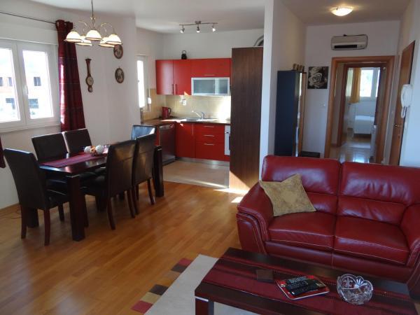 Taxe de sejour est inclus dans le prix.Appartement Marin offre un verre de bienvenue inclus dans le prix. Sont également inclus un parking, un barbecue commun (à l'extérieur du bâtiment), un lave-linge, des serviettes et du linge de lit. Sur demande: un lit supplémentaire (à partir de 12 ans 15 € / nuit), lit bébé (gratuit), transferts de l'aéroport / la gare à l'appartement et vice versa (prix sur demande)
