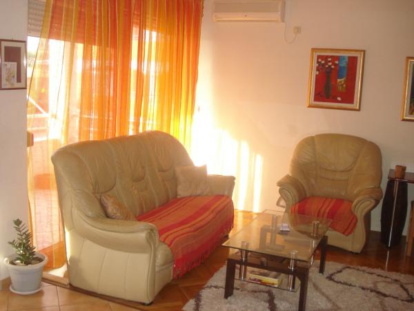 Nouvel appartement situé dans un quartier calme de la ville de Trogir, qui nous sommes situés à 700 m. L'appartement dispose d'une cuisine entièrement équipée avec lave-vaisselle, salle à manger, salon avec canapé-lit pour deux personnes, air conditionné, TV / SAT, radio / CD, chambre séparée, salle de bain avec une machine de bain et lavage, wi-fi gratuit. Le magasin le plus proche est à 100 m, tandis que le marché aux poissons et le marché et à 700 mètres. Pour visiter nos sites culturels et historiques, musées, restaurants, bars tous à 5-10 minutes à pied de notre appartement. L'établissement dispose d'un parking, ce qui ne est pas nécessaire à l'avance pour faire une réservation.