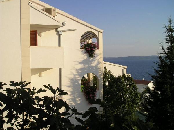 Appartements Vicković sont situés sur le côté sud de l'île de Ciovo, dans la belle Mavarcica loin de la mer à 60 m de la ville de Trogir, à 5 km. L'île est reliée à la vieille ville. Les appartements sont construits de telle sorte que chacun a un salon, cuisine, salle de bain avec WC, chambre avec balcon et terrasse de 14m2 avec vue sur la mer. Vous avez un choix d'hébergement avec et sans air conditionné. Tous les appartements ont une entrée spéciale distincte. Tous les équipements et les meubles étaient tout neufs. Elles sont équipées de TV satellite, téléphone, et il ya la possibilité d'utiliser l'Internet.