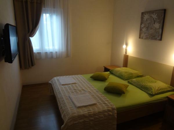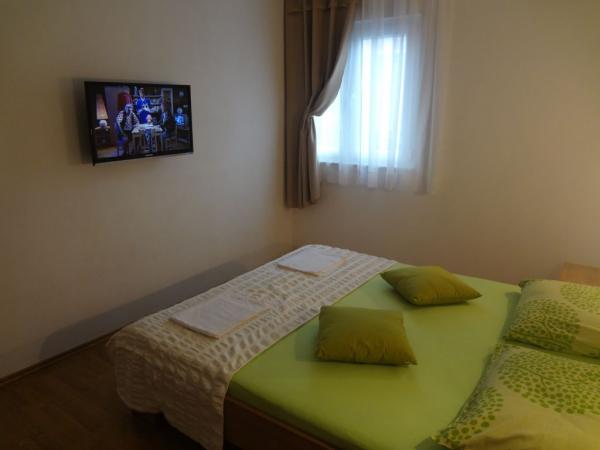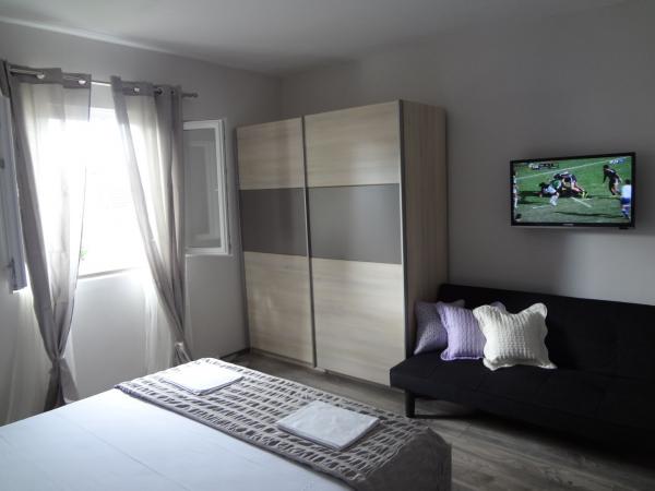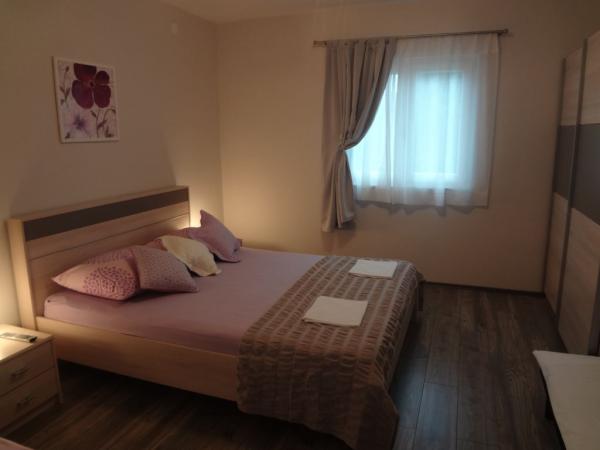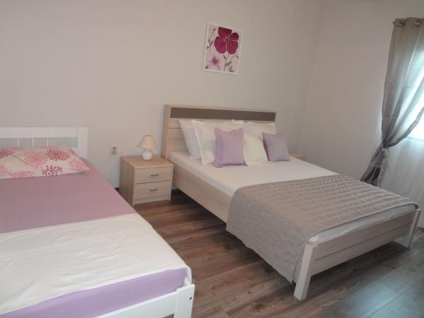 Nous vous proposons deux suites (trois étoiles). Les deux appartements sont situés au premier étage. Appartement A3 +1 dispose de deux chambres et un canapé-lit dans le salon, appartement A2 +2 a une grande chambre avec un lit double, un lit simple et un canapé-lit. Les deux appartements ont des lits doubles, une cuisine bien équipée, un grand réfrigérateur, salle de bains, parking, climatisation, douche extérieure, barbecue et terrasse. Okrug Gornji est situé sur Ciovo qui est reliée au continent. Voilà donc en gros c'est l'île et le continent en même temps. Vous pouvez voyager sans paiement, le continent ou dans toute autre ville avec votre voiture par le pont qui est ouvert 24 heures par jour. De Okrug Gornji vous pouvez aller à Trogir en voiture, bus et bateau. Trogir est de 2-4 km de Okrug Gornji et Split se trouve à seulement 27 km de la station. Okrug Gornji est célèbre pour sa mer cristalline et à 2 km de long plage de galets appelé Copacabana. Trogir, la nature vierge d'origine, il est très attrayant pour le jogging.