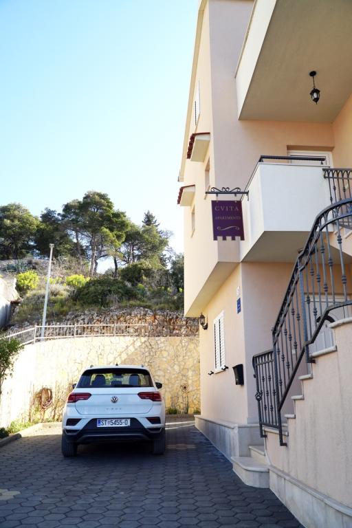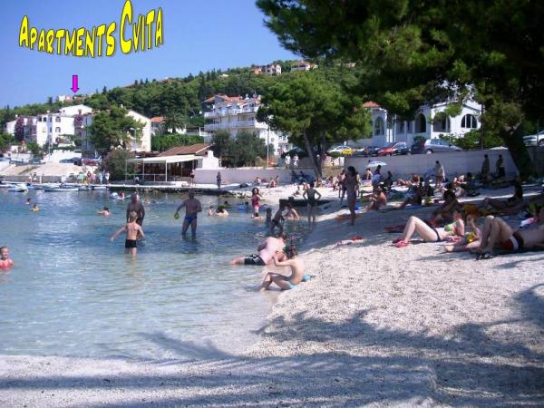 Les appartements Cvita sont situés sur le côté sud-ouest de l'île de Ciovo, à 700 m de la ville de Trogir et à 200 m de la première plage. Deux appartements sont situés au deuxième étage de la maison familiale, et le troisième au rez-de-chaussée et peuvent accueillir de 2 à 4 personnes. L'appartement de 3ème chambre est situé au 1er étage. Le studio est au rez-de-chaussée. L'appartement (6) est situé dans la maison voisine au rez-de-chaussée. Tous les appartements ont une vue directe sur la mer (sauf le Studio) Un parking est prévu dans la cour devant l'immeuble. À côté de la maison, il y a un barbecue et une pièce pour une machine à laver. Nous sommes ouverts toute l'année. Bienvenue!