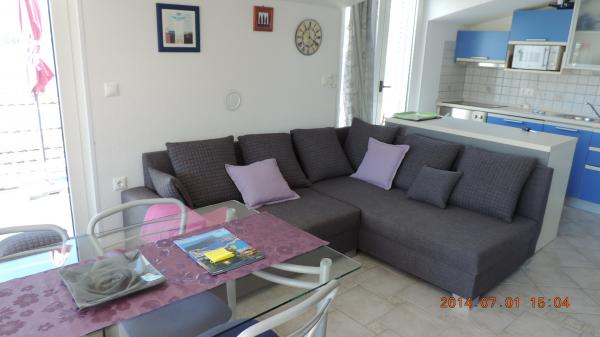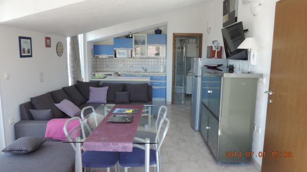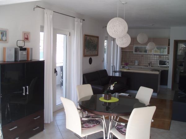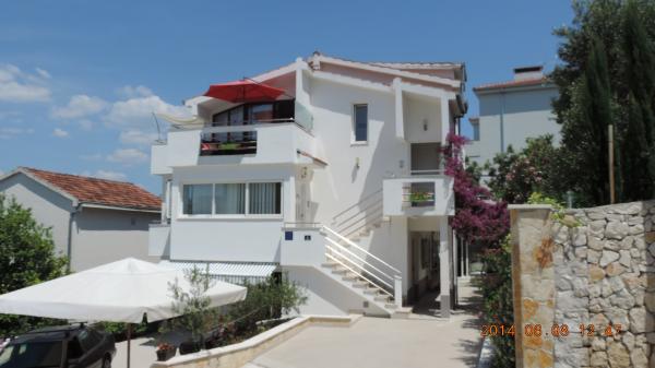 Appartements famille - penthouse Tanja, jolie maison en bord de mer, idéal pour les familles, les petits groupes et les individus. Villa Tanja se trouve à Okrug Gornji, sur l'île de Ciovo, près de la mer, dans un endroit calme, à seulement cinq minutes à pied de la plage. La plage étend autour de la baie avec une longueur de 2 km. Notre villa dispose de deux suites de luxe / penthouse (4 1) et un studio (2 0). Au rez-de-chaussée il ya un grand barbecue avec servant des plats et parler pour 12 personnes. En face du parking de la maison.