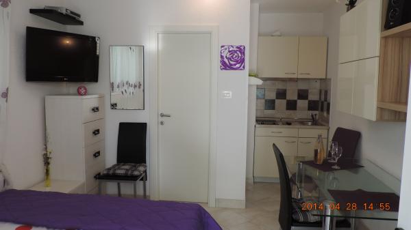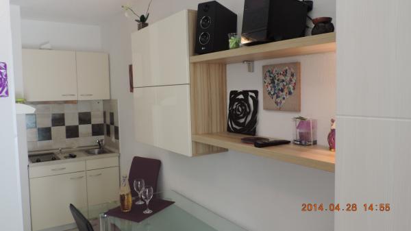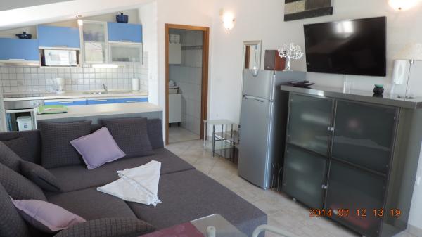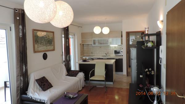 Taxe de sejour est inclus dans le prix.L'aménagement intérieur original d'appartements, avec les activités quotidiennes séparés de pièces de repos et de sommeil, offre un séjour agréable et confortable. appartements terrasse ont deux chambres, cuisine, salon, salle à manger et une terrasse donnant sur la mer. Les appartements sont équipés de tous les équipements nécessaires, air - système Split, télévision par satellite, Wi-Fi, lave-vaisselle et lave-linge, de l'argent des dépôts et des objets de valeur, très importantes fenêtres de détail ont des moustiquaires. Les appartements sont équipés avec tous les petits et grands appareils nécessaires pour la préparation et la conservation des aliments. Notre villa a offert deux appartements de luxe / penthouse et un studio. - Appartement / Penthouse / Charles (4 1), acco