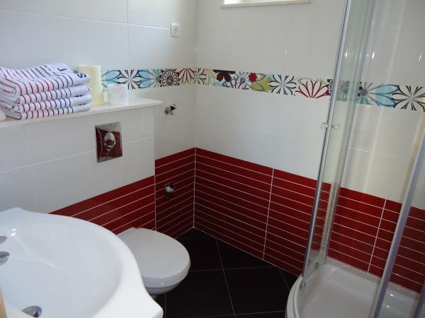 Neuf et appartements de luxe dans un petit village calme Okrug Donji sur l'île de Ciovo. Ciovo est une île reliée par un pont à la terre ferme. Chaque appartement dispose de deux chambres, une grande cuisine équipée avec tous les appareils nécessaires, TV LCD par satellite, internet sans fil gratuit et chaque appartement dispose d'une terrasse ou d'un balcon. Une plage de galets, à 100 mètres des appartements et le plus populaire dans Ciovo pour les familles avec enfants, car il n'est pas encombré et a beaucoup d'ombre car il est le long de la ceinture de plage de pins. Toujours dans le cadre de la maison dispose de plusieurs petites plages sur les rochers qui offrent une plus grande intimité. La boutique est à seulement 300 mètres de l'appartement.