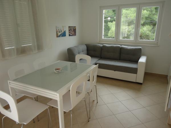 Taxe de sejour est inclus dans le prix.En Trogir, qui est à 8 kilomètres de là, vous pouvez regarder autour de la belle architecture, visiter des musées, théâtre, concerts. Split est à 30 km et en dehors de la voiture, vous pouvez aller à Split et bateau qui va de Trogir plusieurs fois par jour. De Trogir proposent différentes excursions vers les îles de Brac, Hvar et de Solta.