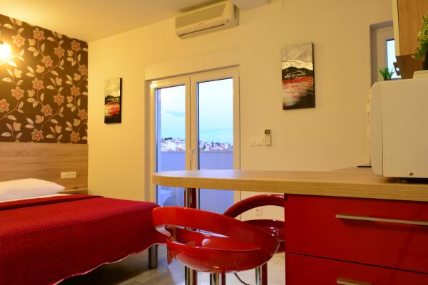Appartements de luxe Villa Tea sont situés à seulement 50m de la plage dans le comté supérieur et 1, 5 km de Trogir. L'aéroport est à seulement 5 km. Pour les clients est un parking privé gratuit et un accès Internet sans fil. Tous les apatmani disposent d'un balcon avec vue sur la mer et une cuisine entièrement équipée avec lave-vaisselle, micro-ondes et une bouilloire. Studios et chaque chambre à coucher et salon dans l'appartement est équipé d'une télévision avec la télévision par satellite et la climatisation. Les salles de bain sont équipées de douches, sèche-cheveux et des articles de toilette. Fer et planche à repasser sont disponibles sur demande. Les appartements se composent de deux chambres avec salle de bain privée dans chaque chambre est disponible comme un lit d'appoint dans le salon pour deux personnes. Près de là sont diverses installations sportives comme la location de jet ski, parapente et aussi la possibilité d'excursions en bateau. La plage est adapté aux enfants avec mini parc aquatique