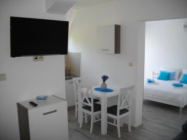 appartements Studio Goga est fourni dans le vieux centre-ville, dans un endroit calme et paisible dans le centre de Trogir, au deuxième étage avec vue sur les sites et la mer. Les appartements sont modernes et entièrement équipées. Nous vous proposons deux suites. Les deux appartements sont climatisés et équipés d'une télévision à écran LCD, la télévision par satellite et une connexion Wi-Fi. Parking pour tous les clients est fourni gratuitement. Nous espérons que vous choisissez nos appartements pour vos vacances à Trogir et nous allons faire de notre mieux pour rendre votre séjour le meilleur possible.