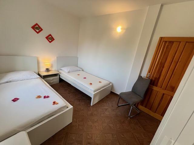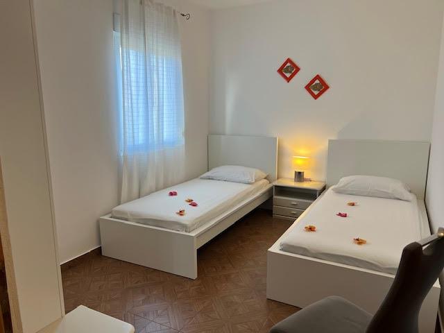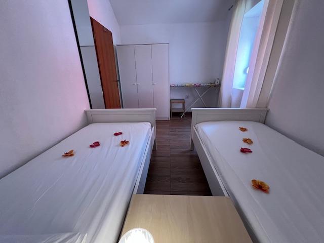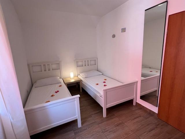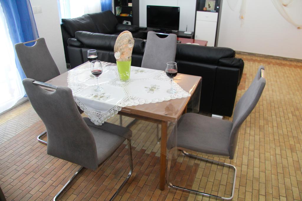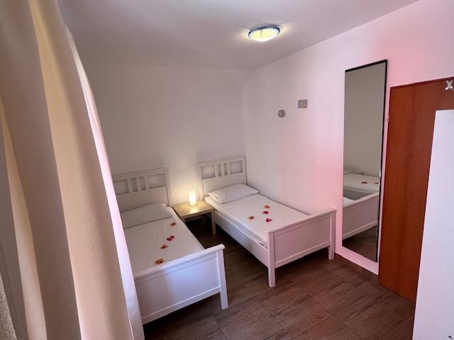 Nos appartements disposent de la climatisation, de la télévision par satellite, du Wi-Fi, d'un parking dans leur propre propriété et d'un lave-linge. Ceci est inclus dans le prix. Nous disposons d'un espace barbecue que nos clients peuvent utiliser gratuitement, inclus dans le prix. Nos appartements sont équipés de tout ce dont vous avez besoin pour vos vacances. Il est situé sur un terrain de 3500 m2. Appartement de 150 m², 2 chambres, cuisine, salle à manger, salle de bain avec douche, salon et terrasse. Distance de la mer directement sur la mer et à 100 m de la mer. Je loue un appartement. Indira, Bepo, Grgo, mobil-home Luka et maison de vacances Indira.