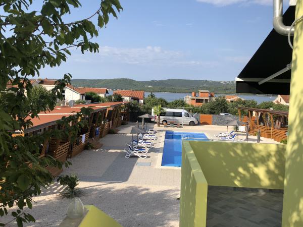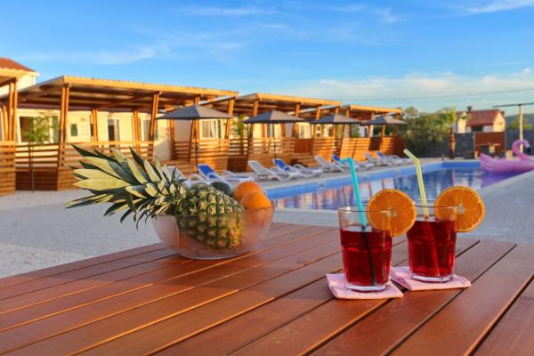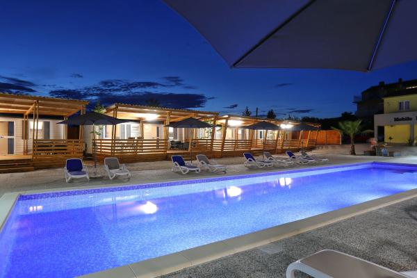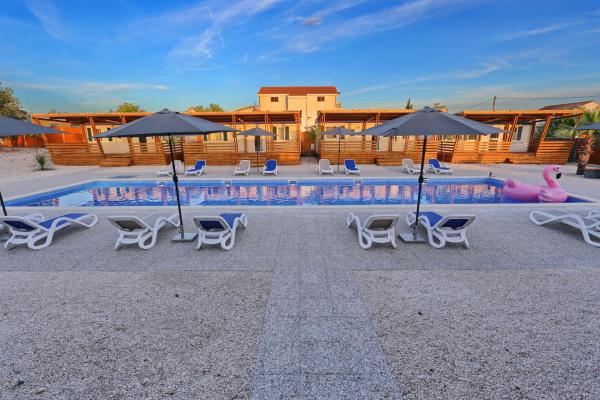 Le camp de maisons mobiles Turanj est situé dans la municipalité de Sv. Filip i Jakov à Turanj. Il est situé à 40 mètres de la belle plage et de la mer propre. Nous offrons l'hébergement dans de belles maisons avec de grandes et grandes terrasses encerclées pour le plaisir et le repos avec une vue sur la grande et spacieuse piscine, et des environnements magnifiquement paysagés et conçus. Mobilehomes-camp Turanj offre l'utilisation d'une grande et spacieuse piscine de 20x5, 5 mètres, et de contenu pour les plus jeunes.