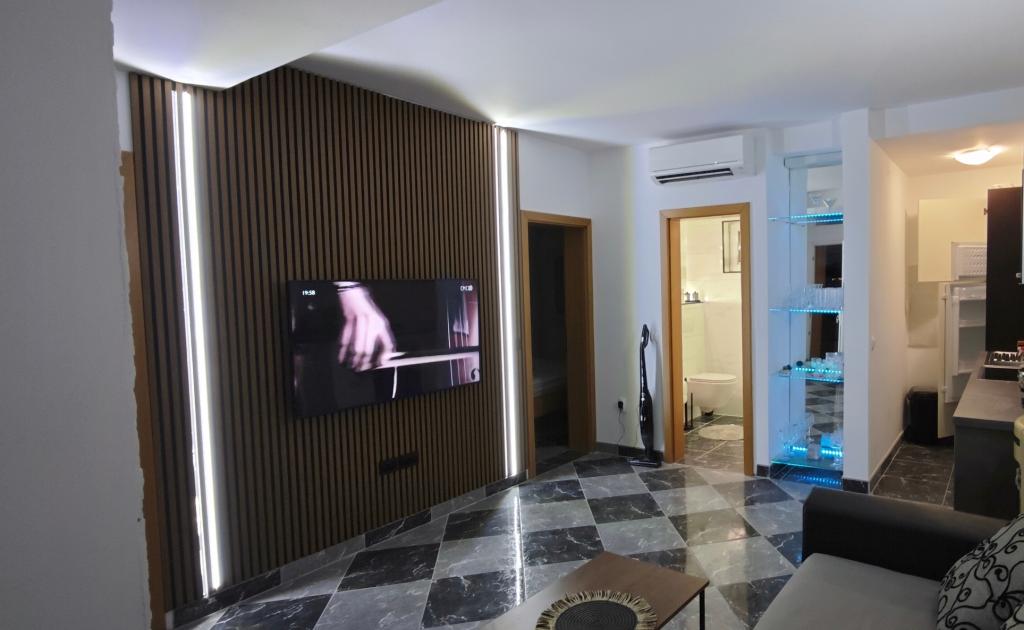 Appartement entièrement décoré de façon moderne sur le côté nord de l'île de Vir. L'île est reliée par un pont. Il est situé au premier étage d'une maison familiale, à 90 mètres de la plage de Zitna. L'appartement dispose d'une cour clôturée avec une place de parking et un grill en brique que les clients peuvent utiliser. L'appartement est équipé de la climatisation, d'une connexion Wi-Fi gratuite, d'une machine à café Dolce Gusto, d'une bouilloire et d'un distributeur d'eau.