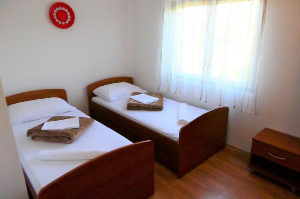 Nous sommes situés dans la zone Radovanjica à environ 300 mètres de la plage dans la baie Radovanjica. Nous sommes en mesure d'offrir des appartements à louer dans une zone séparée de 30m2 et une terrasse de 9m2. L'appartement est nouvellement construit et nouvellement équipé: un lit double, salle de bains, cuisine, TV, climatisation. Nous avons aussi un grand appartement de 70m2 terrasse 10m2. L'appartement dispose d'une entrée séparée et se compose d'un salon commun lié à la cuisine, salle de bains et terrasse et trois chambres qui peuvent être loués et indépendamment.