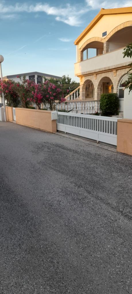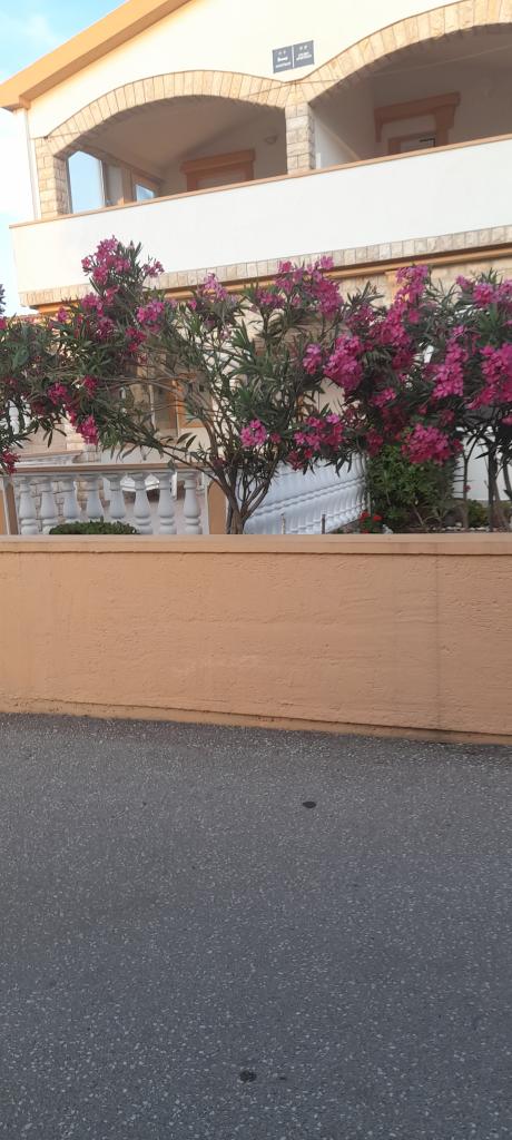Il y a trois appartements dans la maison. Deux d'entre eux disposent de deux chambres, d'un salon, d'une cuisine, d'une salle de bain et d'une grande terrasse couverte. Chacune dispose d'une chambre avec un lit double et l'autre chambre avec deux lits simples. Le troisième appartement dispose d'une chambre avec un lit double, d'une cuisine, d'une salle de bain et également d'une grande terrasse couverte. Toutes les chambres disposent de literie. Les cuisines disposent de vaisselle pour cuisiner et servir les aliments, ainsi que d'un micro-ondes et d'une bouilloire. Chaque appartement dispose de la climatisation, qui est incluse dans le prix. Tous les appartements disposent d'une entrée séparée. Il y a un parking à l'intérieur de la maison qui est à la disposition de tous les invités. Un barbecue peut également être utilisé. La plage de Žitna uvala se trouve à 80 mètres. La plage est de galets et la mer est de sable. Il y a une promenade et une piste cyclable le long de la plage, ainsi que plusieurs cafés, restaurants, pâtisseries et boulangeries. Il y a plusieurs commerces à moins de 100m. Le centre de Vir est à 1800m.