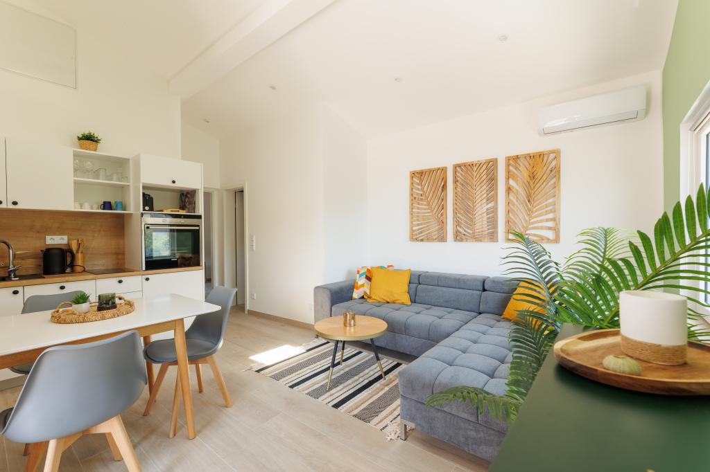 Bienvenue dans un lieu où confort et qualité se conjuguent. Nos appartements offrent un havre de paix chaleureux, moderne et élégant, idéal pour se détendre, explorer l'île et profiter pleinement de vos vacances. Réveillez-vous dans des espaces lumineux et aérés, savourez un café en terrasse et laissez la journée s'écouler à votre rythme. Que vous soyez ici pour nager dans une mer cristalline et bronzer sur la plage, flâner au coucher du soleil ou vous prélasser en toute quiétude, vous trouverez ici tout le nécessaire pour vous sentir comme chez vous et apprécier le charme maritime de l'île de Vir.