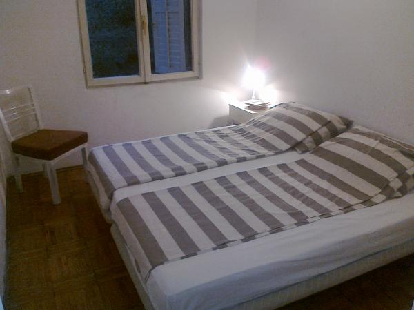 Apartmens poignet Maison 2 appartements, d'abord appartmant une chambre avec lit double, toilettes, cuisine, balcon, au deuxième appartmant 2 chambres, première chambre un lit double + un, deuxième chambre 2 lits simples supplémentaires, toilettes, cuisine, 2 balcons. En dehors du jardin de l'objet, le lieu de barbique et salle à manger, 2 parking.