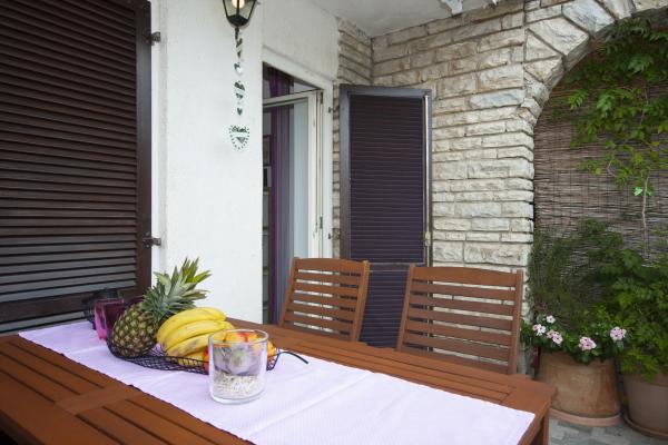 Dans le quartier calme de la belle Vodice, l'appartement romantique Lilly vous attend pour vous reposer et vous détendre. Dans un appartement rénové (70 m2) aux tons pourpres relaxants, commencez la journée sur une terrasse (10 m2) avec café et bonne lecture, avec vue sur le jardin planté de plantes et de fleurs méditerranéennes. L'appartement Lilly est situé au rez-de-chaussée d'une maison familiale. Dans la cour, il y a un parking gratuit pour les clients et un grill. Dans les environs il y a une belle plage de galets avec une ombre naturelle (7 min à pied), où vous pourrez vous promener après une journée ensoleillée et admirer un coucher de soleil. La promenade vous mène ensuite au centre de Vodice, où de nombreux excellents restaurants, cafés et discothèques vous attendent. Vous pouvez passer la soirée sur la terrasse avec un verre de bon vin et une bougie ou visiter la discothèque à proximité, Hacienda et le club Exit. L'avantage de l'hébergement à Aparmana LILLY est que nous offrons un hébergement de qualité et magnifique, dans un excellent emplacement où la plupart de ces activités peuvent être effectuées à pied, et où le stationnement est gratuit. Nous offrons des installations supplémentaires: vélos, kayaks, pêche organisée en kayak. Vodice est situé à seulement 10 km de Šibenik, qui abrite un centre culturel et historique riche et l'une des plus belles cathédrales de Saint-Jacques (sites du patrimoine mondial de l'UNESCO). A proximité se trouvent les magnifiques deux parcs nationaux, Krka Falls et Kornati. Suivez-nous à FB Apartment Lilly, Vodice, Croatie