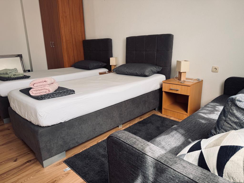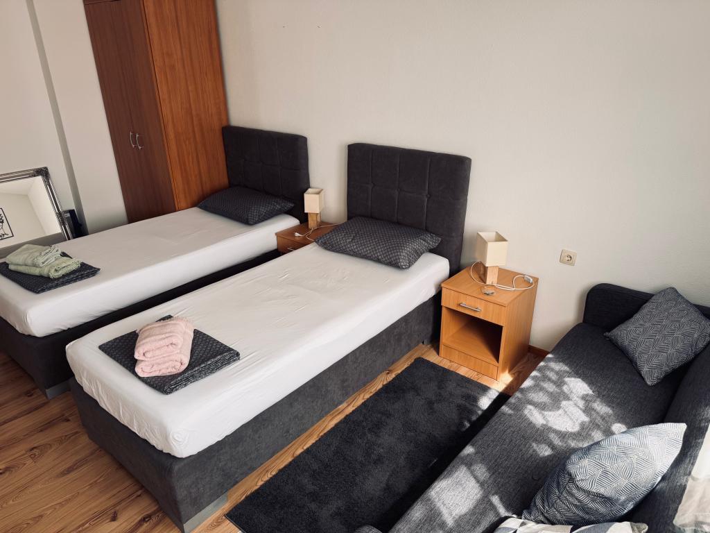 En savoir plus Unités d'hébergementLa réservation est effectuée en payant un acompte via Western Union ou une lettre de crédit via le service postal conformément à l'accord avec le propriétaire en effectuant un paiement d'un montant d'une nuit, tandis que le reste de la facture que le client paie à son arrivée à l'appartement. Le bulletin de versement postal fait foi de la réservation. Vous êtes prié de confirmer votre arrivée par e-mail un ou deux jours à l'avance. départ pranirije sur le chemin confirmer leur arrivée. . La taxe de séjour est incluse dans le prix. Nous envoyons une confirmation écrite de la réservation (bon).