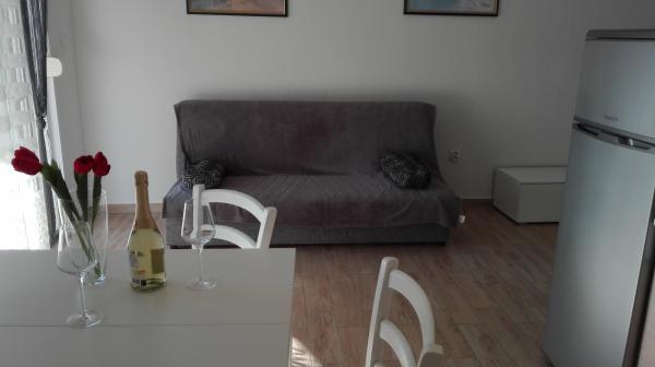 Maison neuve, entièrement meublé et moderne. La maison est située dans un quartier calme, près de la plage, des restaurants, cafés et boutiques. Un parking privé, barbecue dans la cour, une connexion Wi-Fi, Internet, la télévision par satellite. Les appartements sont climatisés. La possibilité de faire un petit animal de compagnie (accord obligatoire)