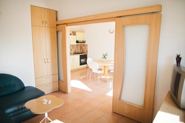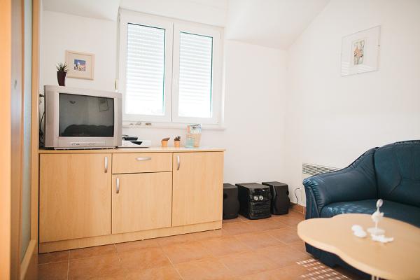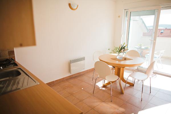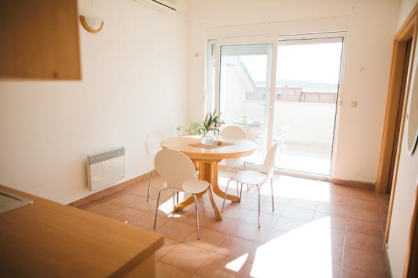 Nouvel appartement dans le grenier, dans un quartier calme, à quelques minutes de la plage. L'appartement donne sur l'île de Prvic, sur le côté sud et est spacieuse. Il dispose d'une chambre avec lit double, salon, salle à manger et cuisine, salle de bains et terrasse. Place de parking. Il a beaucoup d'armoires intégrées.