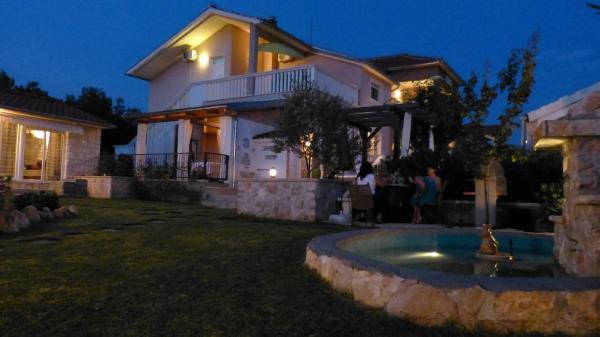Villa Vagabundo - offre des vacances de conte de fées pour le corps et âme à toutes les générations. Villa moderne, confortable et un peu rustique construite (2012 ans), avec beaucoup d'amour et de chaleur, répondra à toutes vos attentes et satisfaire les plus exigeants. Il est situé dans un quartier calme, entouré de végétation méditerranéenne à 1300 m avec une vue sur la mer et la localité. Il offre une atmosphère détendue et des vacances inoubliables que vous méritez! Adapté aux familles avec des enfants en raison de la grande cour et la paix d'esprit. Dans le jardin est une belle fontaine en pierre et un grill. Sur demande, nous offrons notre supplément petit spa offre-jacuzzi avec massage et aperit, et un petit bateau qui peut vous emmener vers les îles voisines pour une baignade dans une belle crique de votre choix en supplément. Vodice est un bel endroit qui souligne la beauté de la mer Adriatique, offre gastronomique, belle propre plages naturelles et de galets, la vie nocturne et de l'hospitalité toutes les sections locales - Venez voir !! Votre satisfaction est notre GARANTIE !!!! :)