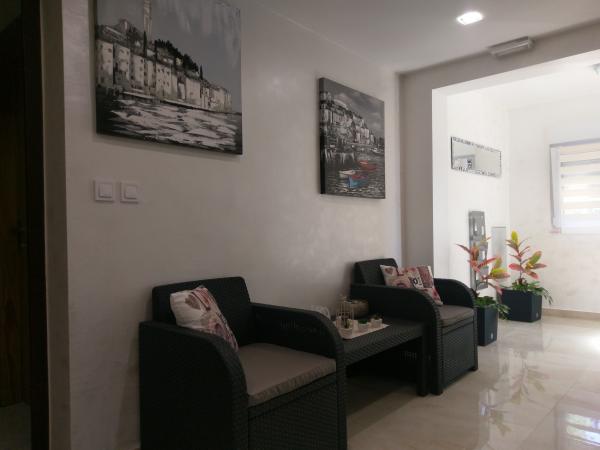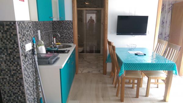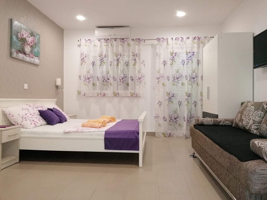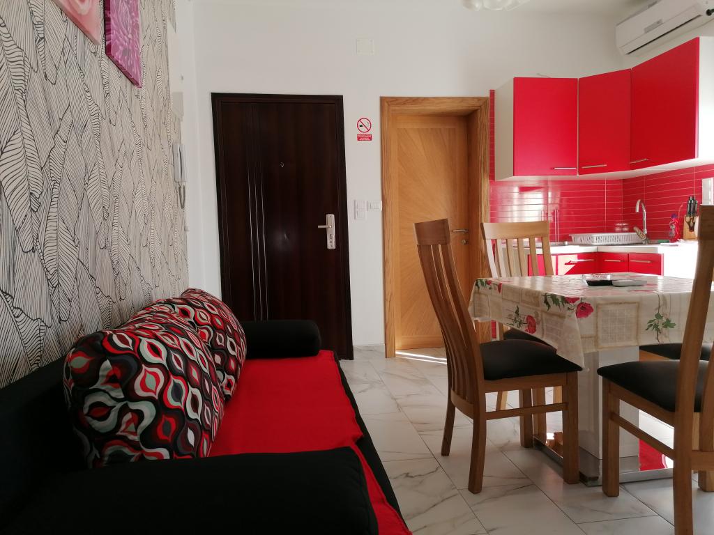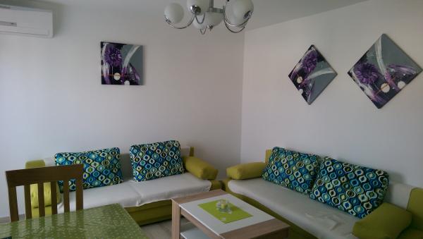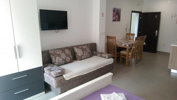 NOUVEAU !!!!! Appartements entièrement équipés et modernes 4 dans un quartier calme de la ville, situé près de la plage. La maison se trouve à 2 minutes à pied de la plage. Dans chaque appartement, un coffre-fort personnel. Dans une cour fermée il y a un parking pour toutes les voitures. Si vous aimez le poisson, la viande, les légumes du barbecue dans l'arrière-cour peut être librement utilisé avec une attrayante. Pagayer à votre arrivée. .