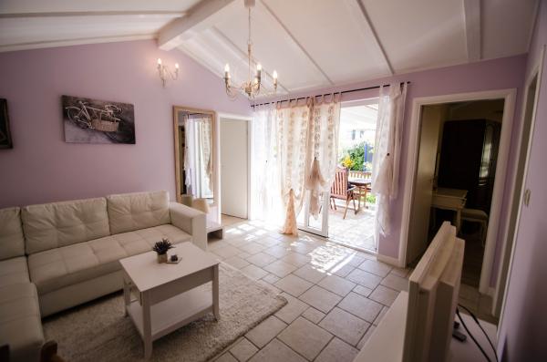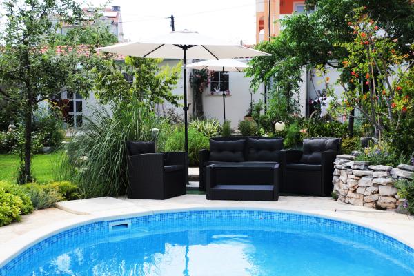 aménagement rustique petite villa dans un quartier calme de la ville, près de la vieille ville, et exclut l'utilisation d'une voiture pour laquelle vous avez un espace de stationnement. La villa est située dans un jardin spacieux et luxuriant avec une piscine et un parc pour enfants. Toutes les installations nécessaires sont situées à 10 minutes de l'hôtel.