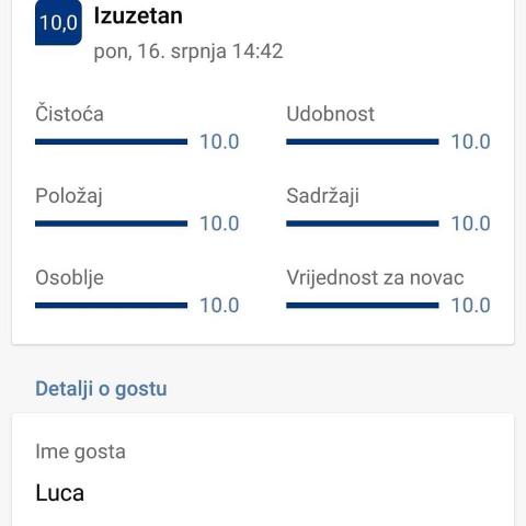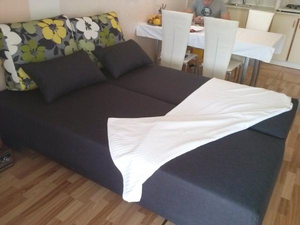 Nous étions 1 semaine en Zaboric (2 pers) L'appartement: La petite et calme appartement est spacieux et confortable. La cuisine est équipée avec tous les ustensiles nécessaires, si vous voulez faire cuire bien équipée. Il dispose de la climatisation qui, pour le refroidissement après le soleil fournit. La chambre est meublée avec un lit double et un placard. La salle de bain est aussi spacieuse. Dans l'ensemble, l'appartement était bien propre. La zone: est très calme et 1 min se trouve une épicerie. La plage est à environ 300 mètres de la manière décrite. Sur la plage nous mangions au restaurant et manger le natif de Shark était délicieux. Les propriétaires: sont des gens très chaleureux et serviable. Pour vous remercier, nous avons été invités à griller et la nourriture était délicieuse. Les images dans la description correspondent à la réalité et nous le recommandons avec une conscience claire. Je voudrais y faire à nouveau des vacances. Ce fut un agréable moment.