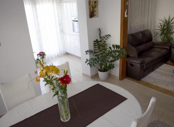 L'appartement est situé dans un quartier calme de la ville, à proximité du centre sportif Višnjik. Le centre-ville peut être en bus (10 min.), Véhicules (5 min.) Ou à pied (20 min.). L'arrêt de bus est à 50m de la maison et est directement relié avec des plages, de la gare de chemin de fer de la ville et du centre-ville. Terrain contient une pelouse avec un barbecue et des places de parking. Vous pourrez vous détendre sur la terrasse. Supermarché, boulangerie et bar à café sont à 5 minutes à pied de l'appartement.