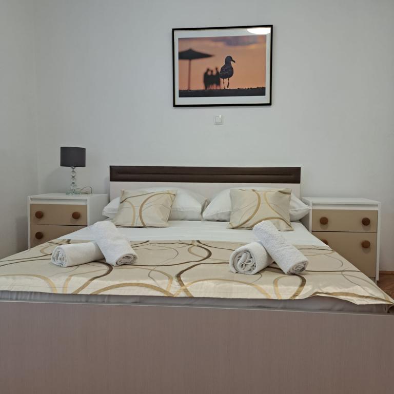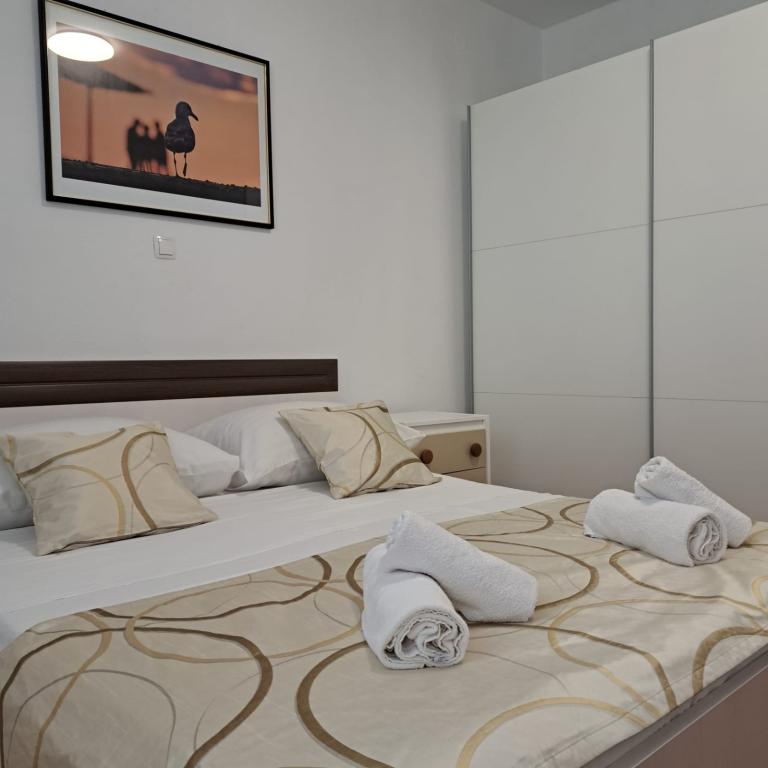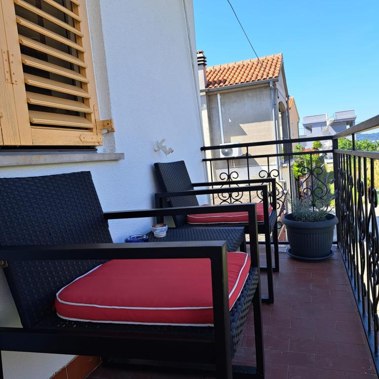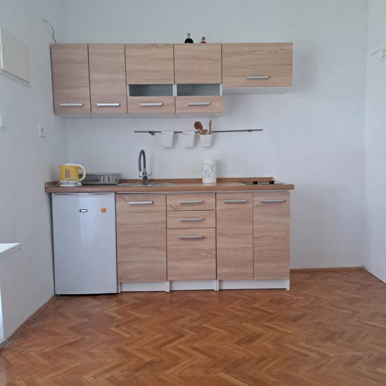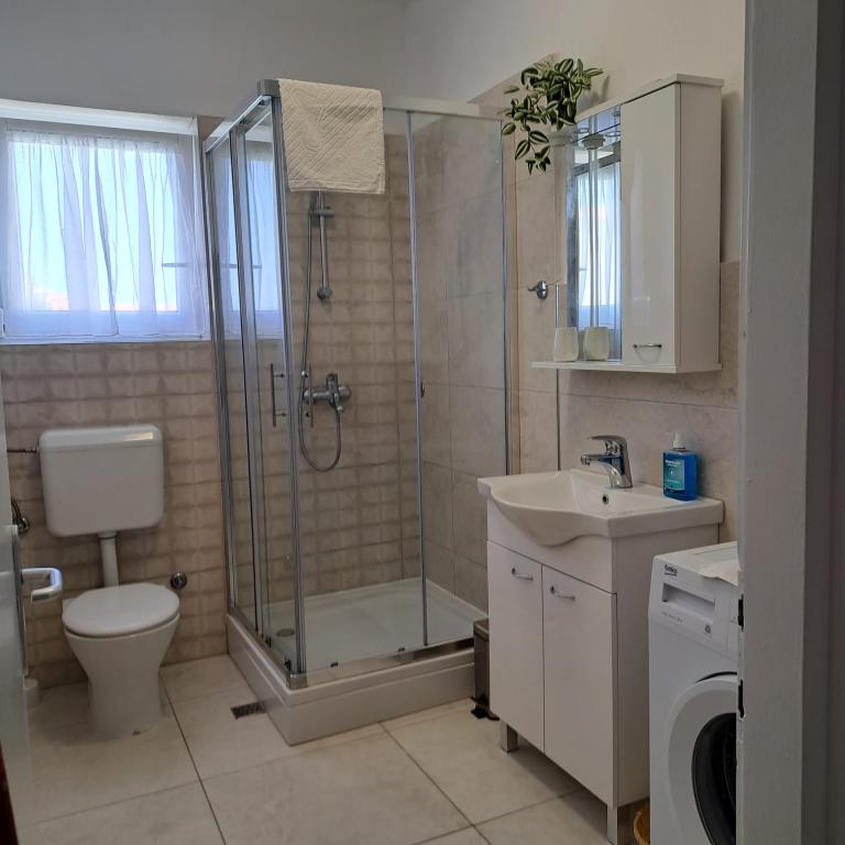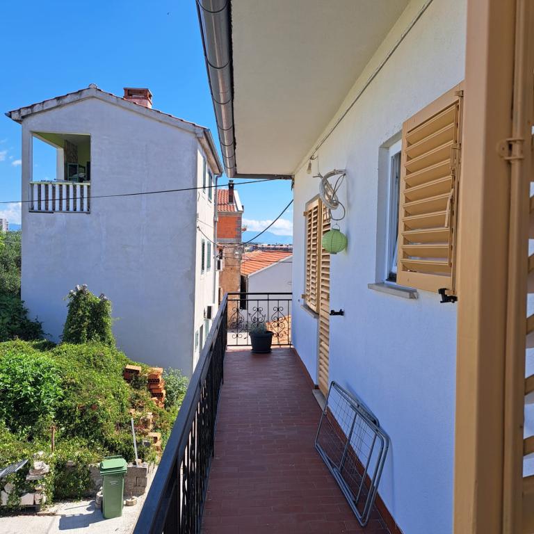 Appartement entièrement équipé dans un quartier calme de Zadar avec vue mer. Le bâtiment est situé à 300 mètres de la mer et à 400 mètres de la plage la plus proche. Le centre est à environ 1 kilomètre et le chemin menant au centre peut être traversé par une magnifique promenade (Karma et Kolovare) le long de la mer. L'appartement est prévu pour deux personnes, et se compose d'une chambre avec sortie sur le balcon, d'un spacieux séjour avec cuisine et d'une salle de bain (douche, lave-linge...). Il y a une vue sur la mer depuis le balcon.