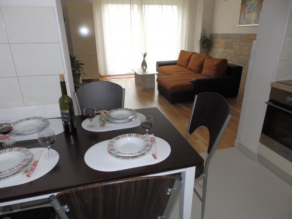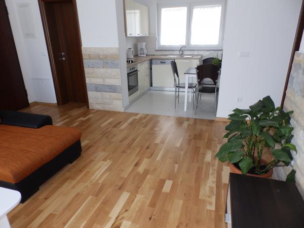 Appartement Nagoya est situé au rez de chaussée du nouveau bâtiment de 6 appartements. Nouveau entièrement équipée appartement dans un quartier calme idéal pour les vacances. Il se compose de deux chambres, cuisine, salon, salle de bains et toilettes. Il dispose également d'un grand jardin de 90m2 avec cheminée, idéal pour des vacances en famille. L'appartement dispose d'un espace de stationnement. Wi-Fi est gratuit.