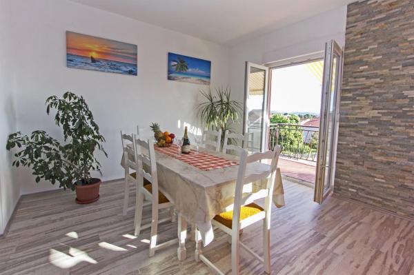 Appartement entièrement équipé, rénové cette année avec terrasse et vue mer. L'appartement est situé à Diklu, une partie touristique de la ville, à moins de 5 minutes à pied de la plage, dans une rue calme, à quelques minutes à pied des clubs. Sur la plage il y a des installations de divertissement (activités en mer) A proximité se trouvent des magasins, pharmacie, banque, station d'essence, restaurants. La gare routière est à moins de 5 minutes à pied de la maison. Grand appartement au 2ème étage avec 3 chambres à coucher, salle de bains et toilette, cuisine et salle de séjour spacieuse avec balcon et vue sur la mer. Le petit aparman est situé au rez-de-chaussée et peut accueillir 2 personnes. Il comprend une cuisine, une salle de bains et une chambre. Contient la climatisation, télévision, internet.