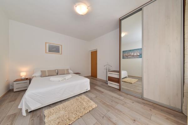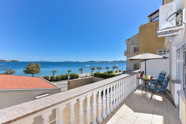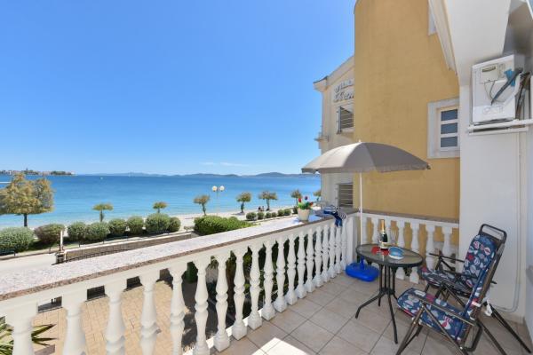 Immédiatement sur la plage il y a deux appartements dans une maison de famille dans la région de Zadar Puntamika, par la mer, en face de la plage. Puntamika fait partie de Zadar est idéal pour un séjour paisible et relaxant car il est situé dans un quartier calme de la ville, sur la plage. Chaque appartement dispose d'une superficie de 30 m2 terrasse 5 m2, situé au premier étage. Les deux appartements offrent une vue magnifique sur la ville de Zadar, péninsule, mer et Ugljan. Le long de la plage il y a une promenade le long de laquelle se trouvent toutes les installations importantes: boutiques, restaurants, bars, pharmacie, banque et arrêt de bus. Le stationnement est dans une zone clôturée devant la maison. Chaque appartement peut accueillir 2 personnes.