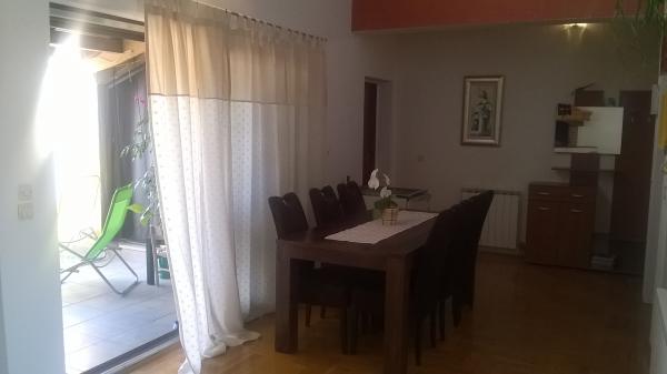 L'appartement est situé dans le grenier de la maison, 125 m2, environ 50 m de la mer. Il dispose de trois chambres, salle de bains, grand salon avec cheminée, climatisation, cuisine entièrement équipée et deux grands balcons. En cas de besoin, il ya aussi des lit et chaise haute pour enfant. Parking pour la voiture dans la cour devant les appartements, les animaux sont les bienvenus.