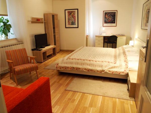 Profitez de Zagreb, en séjournant dans un appartement meublé à neuf dans un bel immeuble, dans une rue pleine de verdure, à 5 minutes à pied du centre-ville. Situé à proximité de sites les plus célèbres de la ville. Vous pouvez marcher jusqu'à la place principale, se détendre et se détendre dans le parc Zrinjevac, allez à la vieille ville supérieure, visiter le théâtre national croate, des musées et des galeries. Toutes les principales attractions sont à une courte promenade dans les rues du centre-ville. Appartement de 36 m2 est meublé avec goût et comprend une salle spacieuse et confortable (23m2) avec de hauts plafonds et deux fenêtres. La chambre dispose d'un lit double, un canapé, mobilier clair et d'un bureau. La cuisine est entièrement équipée et fonctionnelle, ainsi que d'une nouvelle salle de bains moderne. L'appartement dispose d'une télévision à écran plat avec chaînes internationales, accès Internet haute vitesse sans fil gratuit, chauffage central et la climatisation. Appartement Bakic est la solution idéale pour votre séjour à Zagreb.