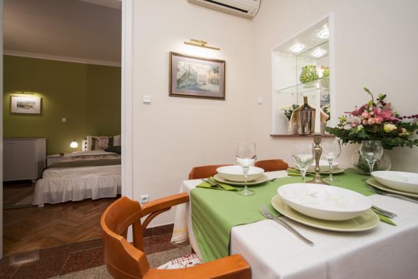 Appartement dans un immeuble très calme et récemment décoré dans le centre de Zagreb. Appartement d'exception est décoré dans un style rétro confortable qui donne l'impression de la vie de la ville, ainsi que le confort de la maison. Meubles rétro avec des bords droits ou formes rondes simples augmenter l'espace de style. Les chambres élégantes, il ya une interaction du style rétro et moderne conviendra voyageurs les plus exigeants du monde. Détails rouges apportent de la vitalité de toute pièce et lui donner vie et de fraîcheur. Un luxueux, spacieux et appartement romantique répondront à toutes vos attentes. Faites comme chez vous dans la cuisine entièrement équipée avec réfrigérateur avec congélateur, cuisinière, micro-ondes, grille-pain et une cafetière. Il ya aussi des nécessités de base comme le café, le thé, l'huile, le vinaigre, le sel et le sucre. Grande salle de bains dispose d'une douche, lavabo, WC, lave-linge, sèche-cheveux et des articles de toilette. La petite salle de bain dispose d'un lavabo et de toilettes. Pour qui travaillent dur et nous avons fer et une planche à repasser . Le salon se compose d'une table à manger et canapé-lit à partir de laquelle vous pouvez profiter d'un bon film sur la t