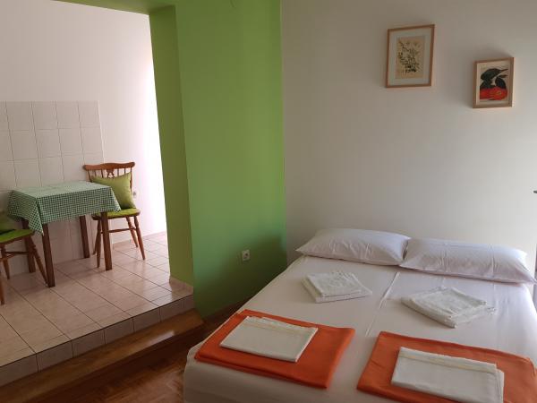 Appartements Bicakcic Je le recommande fortement. Nous y étions en haute saison avec des amis (âgé d'environ 26 ans) et tout était super. La maison est située à quelques pas de la plage. Un parking est disponible sur le seuil de la maison, mais pour expliquer les choses ici vous pouvez directement aller. Nous étions dans l'appartement supérieur avec vue sur mer imprenable. L'appartement était bien équipée - 2 chambres séparées, la cuisine est minuscule, mais pour nous c'était suffisant. Il ya une grande terrasse et 2 petits balcons. La chambre avait la climatisation, wi-fi zdrama, les serviettes, les détergents, le papier, etc toaltení propriétaire de l'immeuble est très sympathique, courtois et serviable. L'endroit est paisible, mais dans la saison sont souvent organisés divers événements, de sorte qu'il ne vous ennuierez pas. Dans le même temps Živogošce Blato point idéal pour des excursions de départ. Dans le village il ya une boulangerie, quelques restaurants, boutiques, étals de légumes et de fruits, etc Belle mer - 2 plages de galets, plus grandes sont les douches, chaises longues, attractions ... La deuxième direction du camp est calme. On peut nager ou à pied et les autres belles plages. Certainement une grande fête!