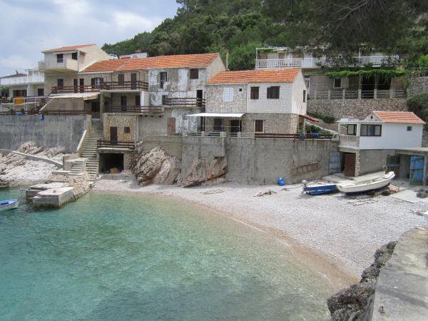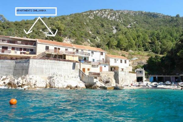 Appartements Robinson Smiljanka sont situés dans la baie, réfutant une partie isolée de l'île. La maison du vieux pêcheur rénovée pour le tourisme et offrent un séjour romantique idéal pour ceux qui veulent échapper à la vie quotidienne occupé. Route d'accès permis (dernier 3 km de route en gravier). Parking et parking grill. Distance de Gdinj 20 min. de la plage 20 m. Bien isolé et loin de la civilisation solide et simplement équipé pour la vie quotidienne. Des panneaux solaires fournissent l'éclairage à la maison et téléphone portable charge. L'eau des réservoirs d'eau de pluie. L'eau froide a été installée dans les cuisines et salles de bains. Douche extérieure chauffée par le soleil. Réfrigérateur et cuisinière à gaz. Nous vous proposons deux appartements: 1 APP (6 personnes) sur deux étages, entrée séparée en plein air, vue sur la mer. 2 chambres, salle de bains, balcon, cuisine, salle de bains, terrasse avec sièges à l'extérieur. 2 APP (8 personnes): sur deux étages, entrée séparée en plein air, vue sur la mer. 3 chambres, 2 salles de bains, balcon, cuisine, terrasse avec sièges à l'extérieur. Bienvenue