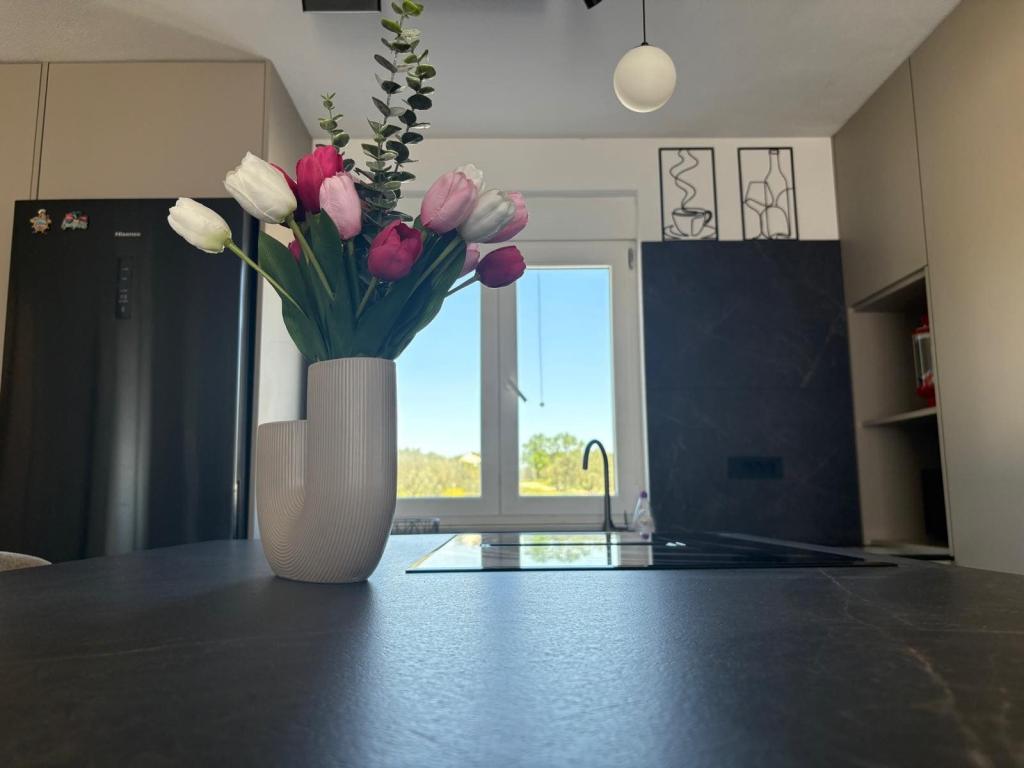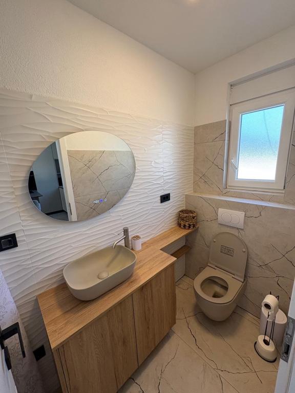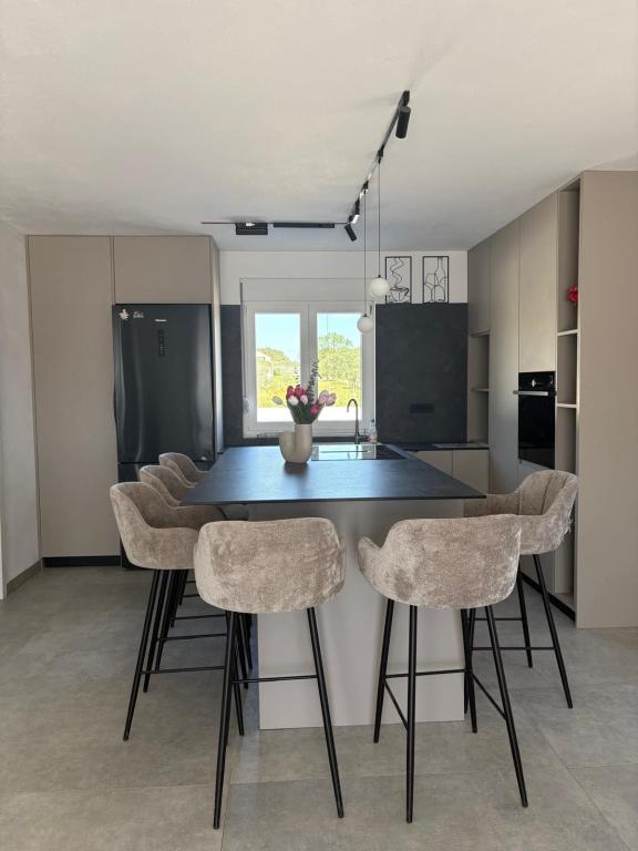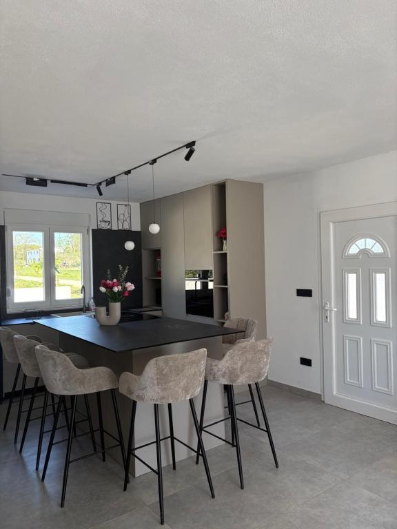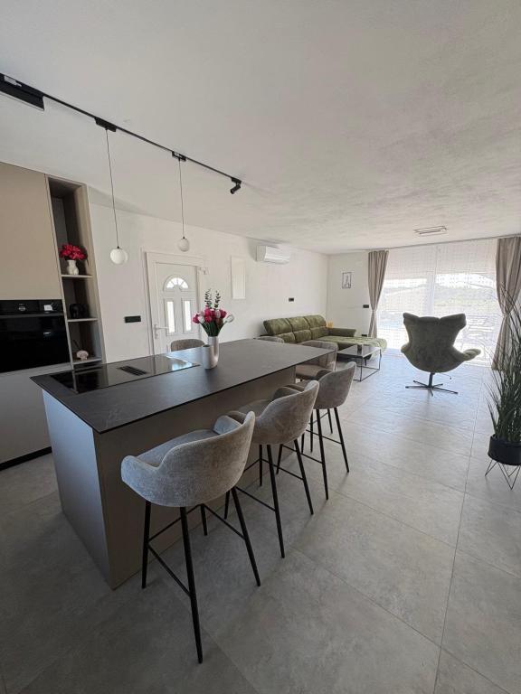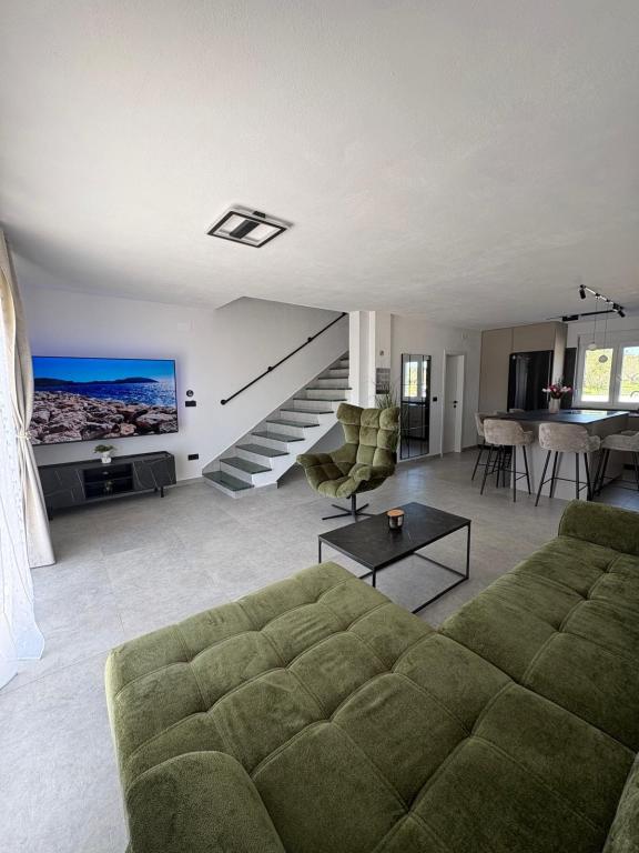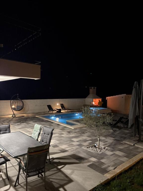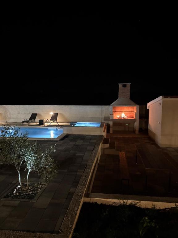 Située au cœur d'une oliveraie, à seulement 2 km de la mer, cette maison de vacances est idéale pour un séjour paisible et ressourçant. Entourée de nature, elle offre une intimité absolue loin de l'agitation urbaine. La piscine chauffée crée une atmosphère unique, parfaite pour profiter des belles journées de printemps et d'été. Le vaste jardin est idéal pour les activités en famille. Au premier étage, vous trouverez trois chambres avec lits doubles et une petite salle de bain. La troisième chambre dispose également d'un balcon offrant une vue magnifique sur la verdure environnante. Au rez-de-chaussée, une cuisine spacieuse et un salon complètent ce bien. La maison de vacances Frano est le choix idéal pour vous : elle allie le confort de la nature et la proximité de la mer, vous offrant tout le nécessaire pour un séjour inoubliable. La maison est entièrement équipée et dispose d'une cheminée extérieure.